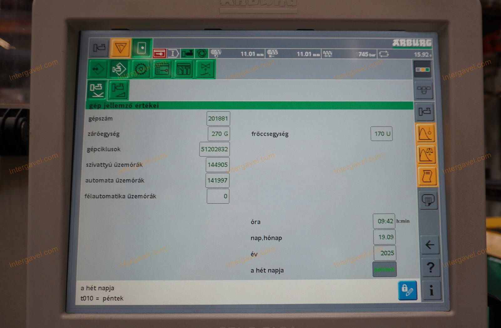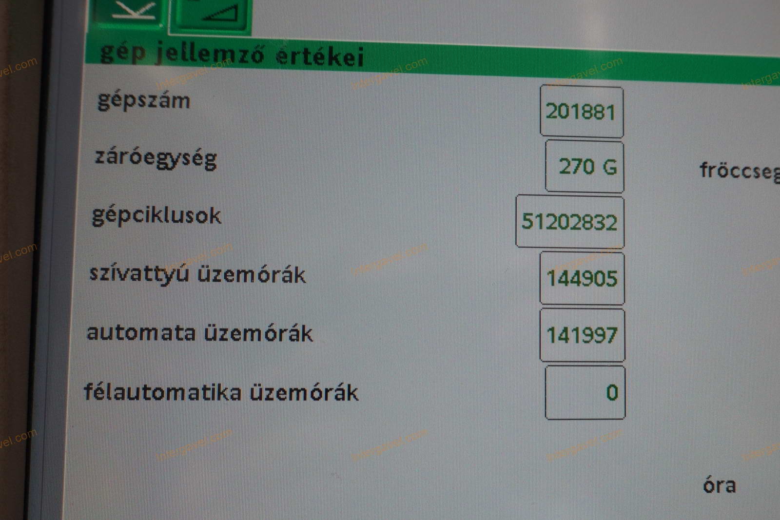 - eladó a felmérés időpontja (2025.09.19) után még használja a fröccsöntő gépet, ezért az üzemóra, ciklusszám értéke változik
