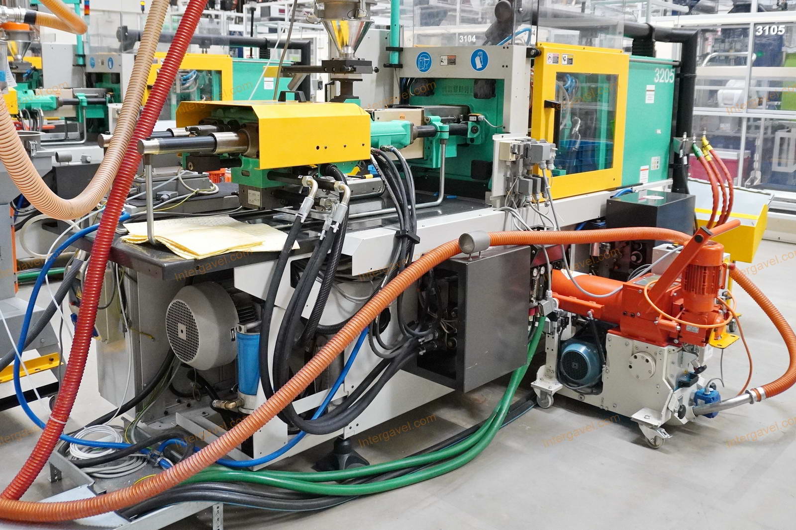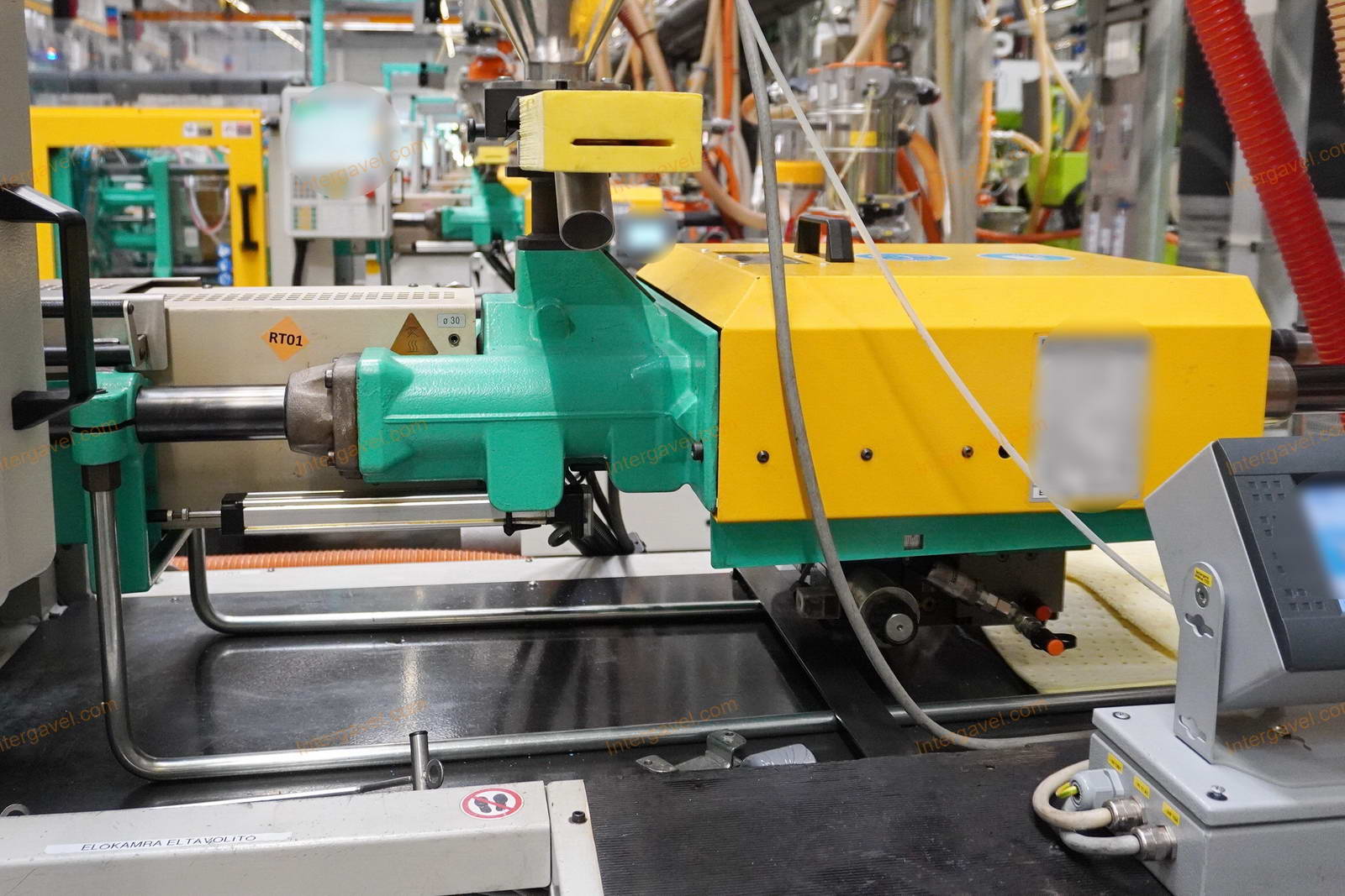- gép környezetében látható egyéb eszközök nem tartoznak a tételhez, mint pl szállító szalag, műanyag daráló, láda cserélő, temperáló, granulátum keverő és csővezetéke, tároló eszközök stb.