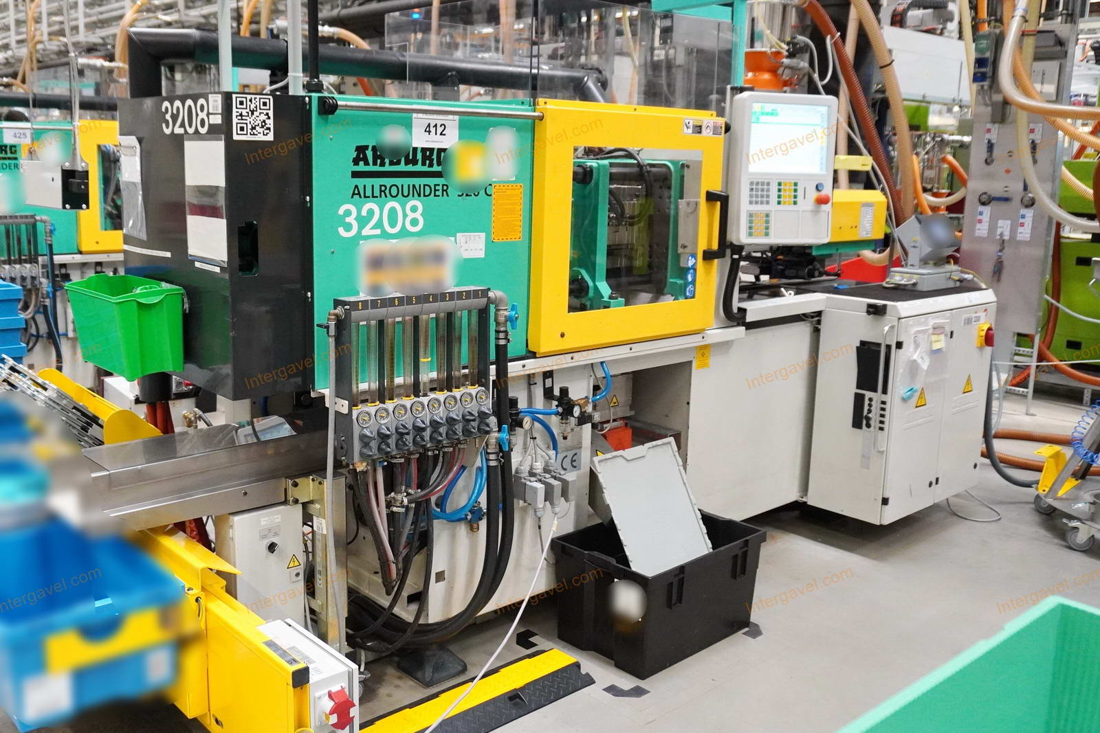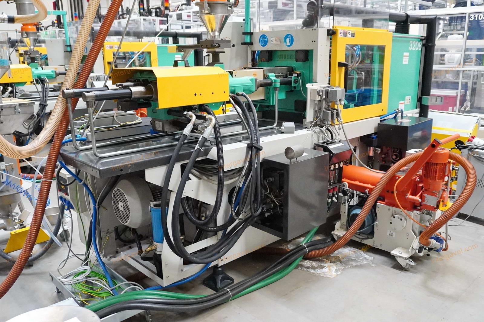 - gép környezetében látható egyéb eszközök nem tartoznak a tételhez, mint pl szállító szalag, műanyag daráló, láda cserélő, temperáló, granulátum keverő és csővezetéke, tároló eszközök stb.