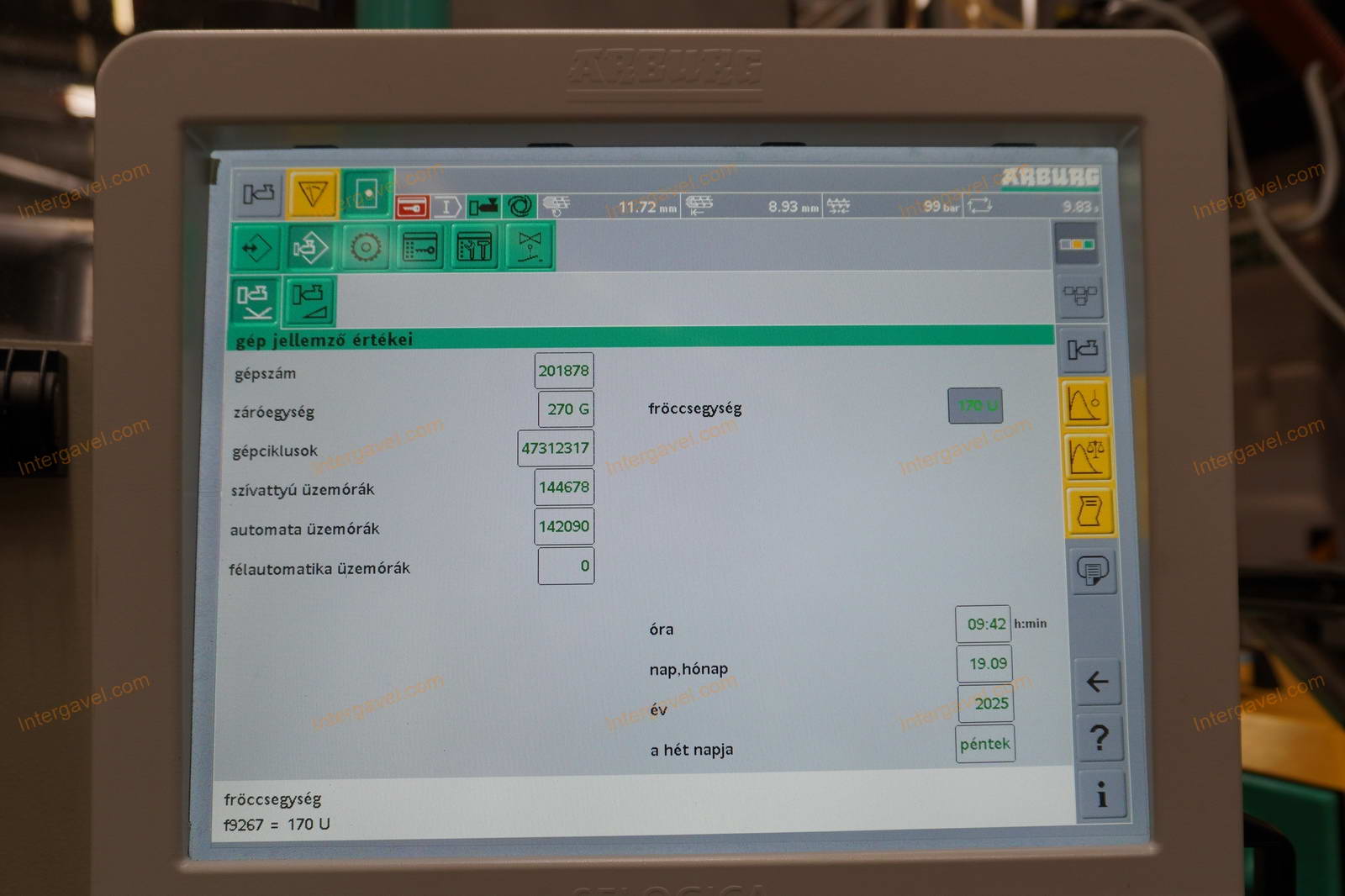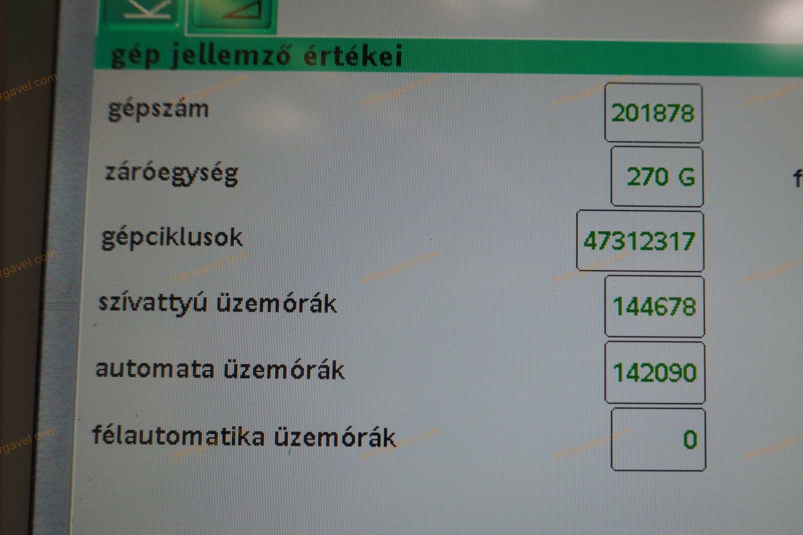 - eladó a felmérés időpontja (2025.09.19) után még használja a fröccsöntő gépet, ezért az üzemóra, ciklusszám értéke változik